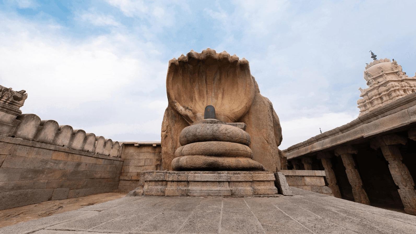 Ancient stone Nandi and Shiva Lingam at Lepakshi Temple, Andhra Pradesh.